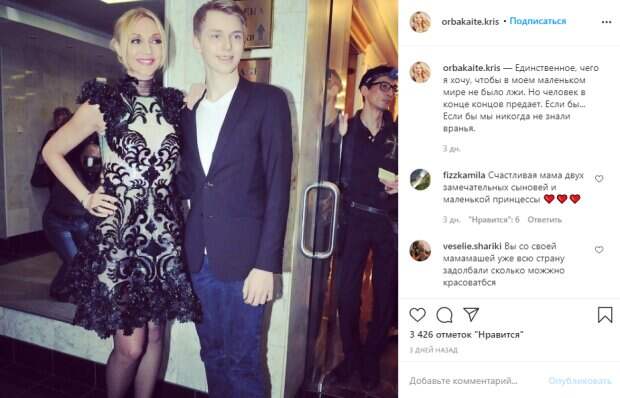 Также на ней были колготки-"сеточка". Счастливая Орбакайте положила руку высокому и стройному сыну на плечо, а тот, в свою очередь, обнял маму за талию. Парень был в черном классическом пиджаке, темно-синих джинсах и белой футболке. "Единственное, чего я хочу, чтобы в моем маленьком мире не было лжи. Но человек в конце концов предает. Если бы... Если бы мы никогда не знали вранья", - так подписал фото автор поста. Пользователи кинулись обсуждать увиденное, отмечая, как молодо выглядит певица, что родному сыну годится в подруги. "Счастливая мама двух замечательных сыновей и маленькой принцессы ❤️" "Вы со своей мамамашей уже всю страну задолбали сколько можно красоваться" "Супер фото