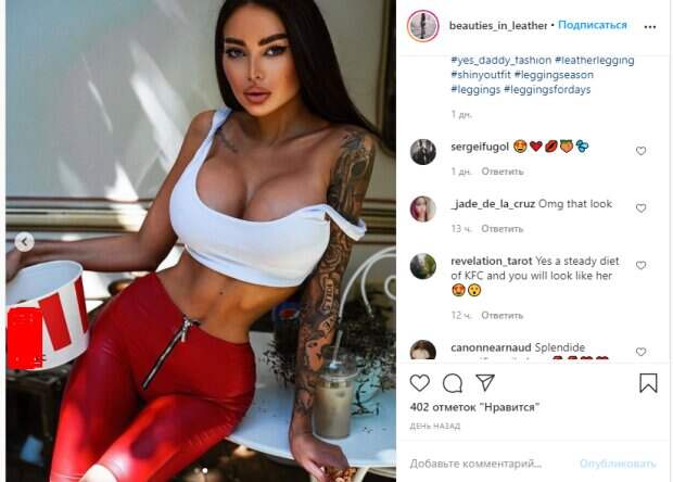 Еще больше похудеть, уколоть филлеры в губы и скулы, подправить профиль, сделать кожу бронзовой после многочисленных походов в солярий и вставить импланты в ягодицы и грудь. Теперь модель, после того, как поддалась влиянию современных тенденций и стала частым гостем пластического хирурга, поражает исхудавшим телом и при этом может похвастаться пышными формами. На фото видно, как модель хвастается тонкой талией и блистает в коротеньком белом топе с красными шортами на молнии спереди. Вот как реагируют на жаркое фото в сети, на котором тощая модель с упругим бюстом держит в руках целое ведерко с нагетсами в руках: «Да, стабильная диета из KFC, и вы будете похожи на нее