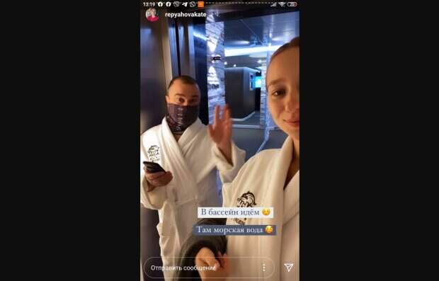 Екатерина предстала в белом халате в лифте, когда за ней зашел муж. Виктор Павлик также был в халате, а нос и рот прикрыл платком. Артист помахал рукой в камеру. Репяхова улыбнулась, похвалившись свежим видом без косметики. Позже девушка показала свой талант - как плавает в бассейне с голубой водой. Девушка улыбалась и видно, что ей нравится это занятие. А в это время ее снимал, вероятно, муж. "Какая я смешная", - написала жена Павлика. Кадры не собрали много лайков и комментариев в открытом доступе, ведь в сторис нет такой возможности. Ранее мы писали, что Виктор Павлик женился в четвертый раз 29 мая прошлого года в одном из киевских ЗАГСов. Избранницей стала его молодой концертный директор Екатерина Репяхова. Сначала пышное торжество перенесли изза карантина, но после того, как у Виктора умер сын, пара и вовсе отменила праздник. Примечательно, что пара познакомилась на концерте в Трускавце 16 лет назад. Артист запомнил Екатерину. А когда девушка повзрослела и закончила учебу в вузе, она случайно встретила Павлика в одной из николаевских гостиниц. Певец позвал девушку, после чего завязался разговор и появились чувства. Напомним, Павлик на корпоративе отжег хит российского певца: "Мечты сбываются. ..". Как сообщала Politeka, беременная жена Павлика показала, что у нее подрос не только живот: «Это все результат моих…». Также Politeka писала, что беременная жена Виктора Павлика рассказала о большой трагедии в семье, личные кадры: "Нет моего...".