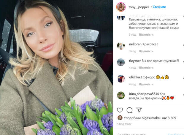 Дочь легенды украинского кино Ольги Сумской, актриса Антонина Паперная поделилась свежим кадром Как пишет Politeka.net, у себя в Инстаграм 30-летняя звезда опубликовала фото, на котором позировала, сидя в машине. Тоня была одета в теплое пальто. Волосы красотки были распущены. Артистка решила похвастаться подарком – букетом свежих весенних цветов, которые она держала в руках.