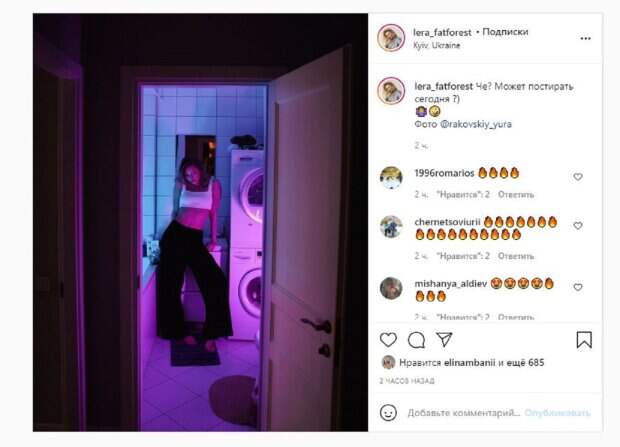 Известная украинская актриса Лера Товстолес, звезда "Квартал 95", показала себя, восхитив фанатов На фото Лера показалась в штанах и белом топе. Красотка стояла в ванной комнате, соблазнительно выгнувшись у стиральных машинок. Товстолес показывала идеальную фигурку и совсем не смущалась открытого животика, благодаря кадр вышел даже немного пикантным.