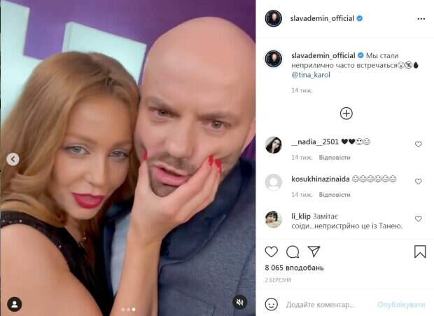 Ведущему "Голосу країни" Славе Демину, с которым успела сблизиться певица Тина Кароль, досталось от Андре Тана Теле- и радиоведущий на Люкс ФМ Демин активно ведет свою страницу в Инстаграм. Он частенько появляется в компании украинских звезд, в частности Тины Кароль. Так, во время съемок последнего сезона "Голосу країни" парочка беззастенчиво обнималась, а однажды Кароль и вовсе уселась Демину на шею.