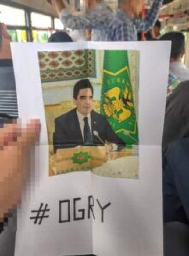 В Ашхабаде и других городах Республики Туркменистан появились листовки с изображением президента Гурбангулы Бердымухамедова с антиправительственными надписями. В частности, на листовках написано “Пошел вон!” и “Вор”, передает информресурс Turkmen news. Портреты президента с такими словами граждане республики находят в общественном транспорте, в подъездах жилых домов и во дворах микрорайонов.
