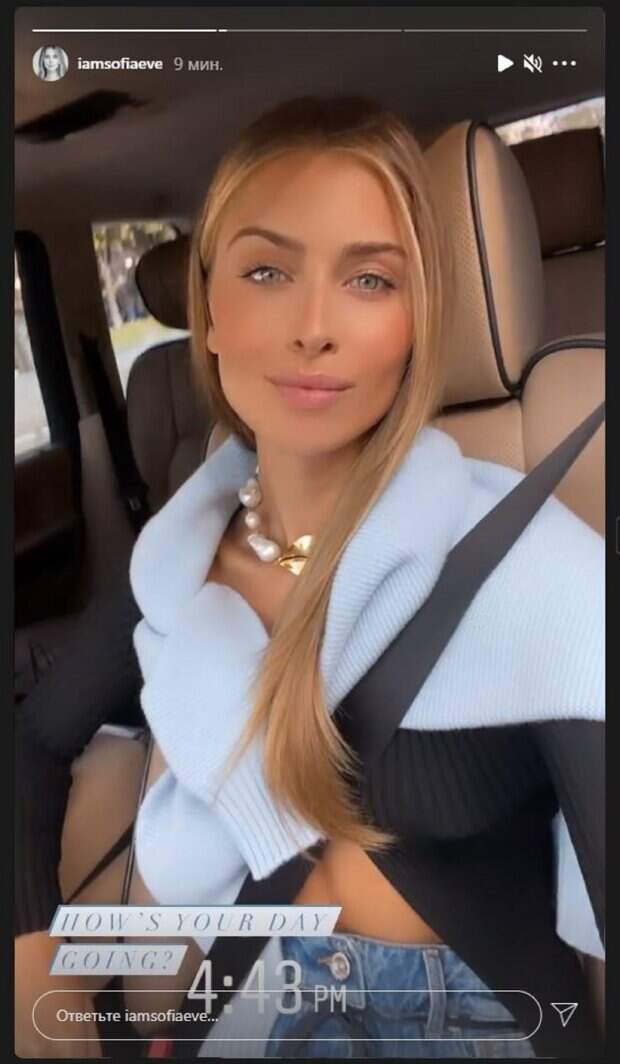 Не забывает Соня и об Инстаграм, где делится с десятками тысяч фанатов самым интересным. На новом фото Соня была в джинсах и наряде с открытым животом. Сверху на Евдокименко можно увидеть стильную кофточку, которую девушка завязала на плечах. Красотка снимала себя на телефон, сидя в автомобиле и пристегнувшись ремнем безопасности. "Как проходит твой день?", - спросила Соня в подписи к сторису. Фанаты не ставили лайки и не писали комментарии, ведь таких функций в этом разделе Инстаграм нет, кроме прямого сообщения в Директ. Напомним, внучка Ротару засветила знойного красавчика во время пляжной прогулки А еще Politeka сообщала, что внучка Ротару в узком до неприличия топе козырнула гибкими формами Также Politeka писала, что невестка Ротару показала, как проводит время с повзрослевшей дочерью