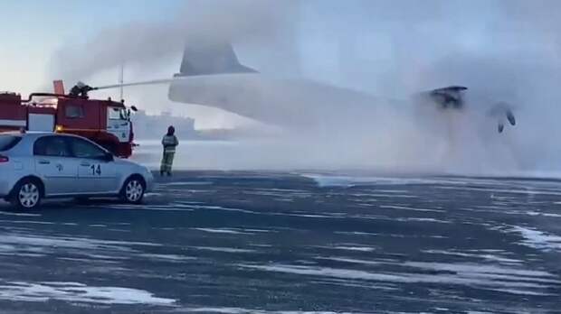 Самолет Ан-12 загорелся на взлетно-посадочной полосе в новосибирском аэропорту Толмачево. Перед этим борт совершил вынужденную посадку, передает ТАСС. «В 12:57 экипаж самолета Ан-12 совершил вынужденную посадку в аэропорту...