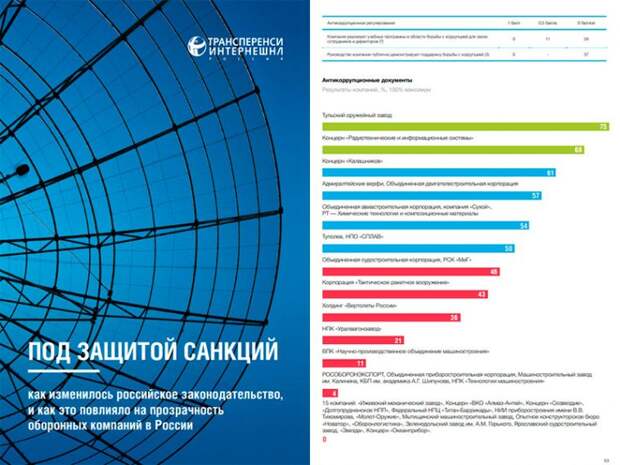 Трансперенси Интернешнл – Россия Санкционный режим, введенный властями США и Евросоюза в отношении предприятий российского оборонно-промышленного комплекса (ОПК, бывший военно-промышленный комплекс) запустил цепную реакцию, которая привела к серьезному снижению прозрачности оборонных предприятий в России.