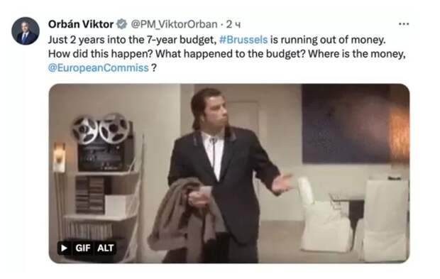 Как так? Что случилось? Еврокомиссия, где деньги?» Фон дер Ляйен: «Какие деньги?» — выложил ироничный пост политик. К нему он добавил мем с Джоном Траволтой из «Криминального чтива», на котором актер разводит руками. Ранее Виктор Орбан заявил, что сейчас в Евросоюзе нет ни мира, ни процветания. Политик также заметил, что в настоящий момент объединение вовсе не оправдывает то, зачем вообще оно было создано. Подробнее об этом читайте в материале Общественной службы новостей. Сообщение Орбан высмеял фон дер Ляйен, опустошившую казну Евросоюза помощью Украине появились сначала на Общественная служба новостей.