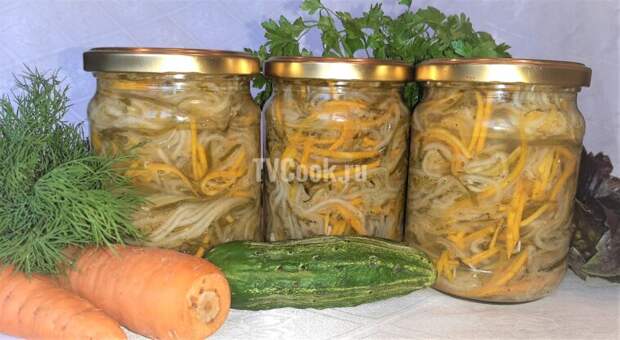 Салат на зиму «Огурцы с морковью по-корейски» готовится просто, а результат превосходный! В меру острый, хрустящий, отличный в качестве закуски на праздничный или обеденный стол. Ингредиенты огурцы 2 кг.; морковь 2 шт.; чеснок 1 гол.; соль 1 ст.л.; сахар 2 ст.л.; уксус 9% 125 мл.; масло растительное 125 мл.
