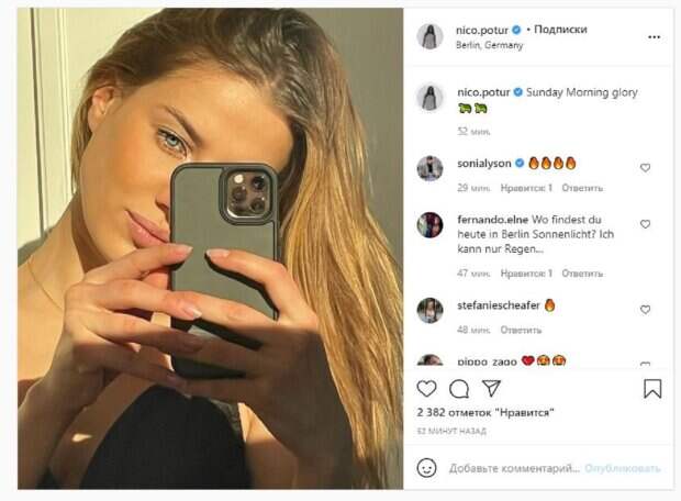 Об этом пишет Politeka.net со ссылкой на страничку знаменитости. "Воскресная утренняя слава", - написала Николь. Фанаты поставили более двух тысяч лайков и написали комментарии: "Где сегодня в Берлине солнечный свет? Я могу только дождь ...", "Восхитительная", "И самые красивые глаза на земле!", "Самая красивая женщина на Земле", "Доброе утро", "Прекрасно", "Это чудесно", "Безупречная", "Святое солнце", "Сияешь в огне", "Сногсшибательная крошка". Мы писали, что известная модель Николь Потуральски, которой приписывали роман с Брэдом Питтом, неожиданно задрала ножки. Звезда сделала селфи, направив камеру телефона на зеркало. Николь была в черном платье, которое обтянуло ее изгибы. Однако знаменитость, вероятно, забыла о приличии. Модель задрала ноги в столь жарком наряде, едва ли не сверкнув самым сокровенным. Напомним, экс-любовница Брэда Питта в коже показала молодую красоту со всех сторон А еще Politeka писала, что экс-любовница Брэда Питта поиграла с фантазиями мужчин, засветив "шарики" без белья Также Politeka сообщала, что экс-любовница Брэда Питта в мини-юбке завлекла роскошным видом на кровати