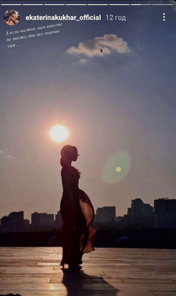 net. В stories в своем Instagram заслуженная артистка Украины Екатерина Кухар опубликовала нежное фото напротив солнца. Женщина была в длинном легком платье, которое красиво развивалось. "А если честно, нам вместе не место, ты же знаешь сам...", - загадочно написала Кухар. Кому посвящены эти слова, сказать трудно. Балетом Екатерина Кухар начала заниматься с пяти лет. Ее отвели во Дворец пионеров на секцию спортивной гимнастики, но уже после первой тренировки перевели в балетный кружок. Заметим, что широко известной Екатерина Кухар стала благодаря телевизионному шоу "Танцы со звездами". Прима-балерина Национальной оперы зарекомендовала себя как требовательный и объективный член жюри, чем и привлекла внимание поклонников танцевального шоу. К тому же, Екатерина руководит балетной труппой "KievBallet", которая насчитывает около 30 артистов, гастролирующих в таких странах как Франция, Польша, Бельгия, США. Ранее Politeka писала, что Екатерина Кухар потерялась в толпе молоденьких балерин, такая хрупкая, что не отличить: видео. Напомним, что муж повар из " Танцев со звездами "заставил восхищаться жгучей красавицей:" она вывела меня...". А еще Politeka сообщала, что Кухар из "Танцев со звездами" в окружении юных балерин рассказала о своей цели: "Чувствую безумную ответственность".