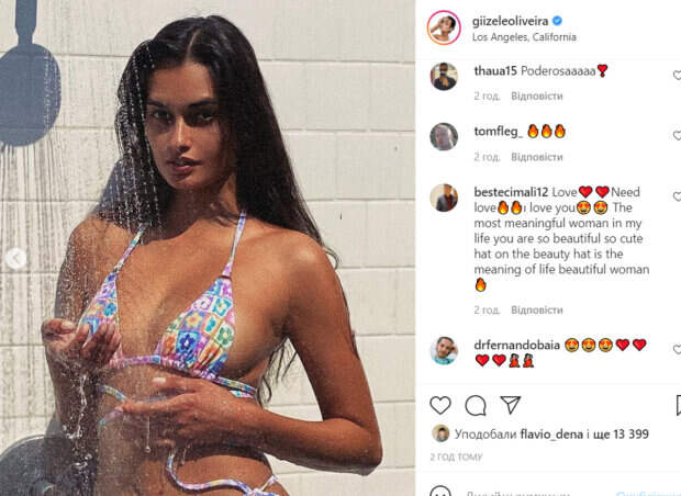 Звезда решила добавить перчинки своему микроблогу, встав под душ и понежившись под водой. Кадр получился невероятно горячим – от загорелой кожи модели невозможно было оторвать глаз. В комментариях экзотической красотке оставили массу приятных слов. «Вы невероятная женщина», «Слишком горячо», «Сладкая конфетка», «Вот основная причина глобального потепления», «Самая значимая женщина в моей жизни, ты такая красивая, такая милая», «Горячая девушка», - пишут пользователи сети. Отметим, что Жизель приехала покорять модельный бизнес США из Бразилии. В начале карьеры красотка даже не знала английского языка. Напомним, что Жизель Оливейра в слишком тонкой одежде впечатлила фигурой на прогулке: "Маленький фейерверк". А еще Politeka писала, что Жизель Оливейра показала глубокое декольте вблизи: "Жаркая, как солнышко". Также Politeka сообщала, что Жизель Оливейра показала совершенства фигуры в эффектном купальнике: яркие фото.