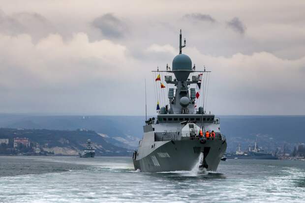 В Черном море проводят учения фрегаты Черноморского флота России "Адмирал Григорович" и "Адмирал Эссен". Следующий этап учений - отработка ракетных ударов. Об этом сообщает пресс-служба Минобороны России в понедельник, 12 июля. "При подходе к указанному району экипажи фрегатов "Адмирал Григорович" и "Адмирал Эссен" были атакованы.