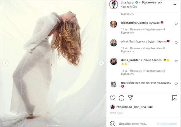 Известная украинская певица Тина Кароль взбудоражила сеть новой фотосессией Как сообщает Politeka.net, известная украинская певица Тина Кароль часто радует поклонников яркими публикациями в своем Instagram. Так, в этот раз звезда очаровала новой фотосессией, а еще заинтриговала фанатов новым альбомом, который готовит к релизу.