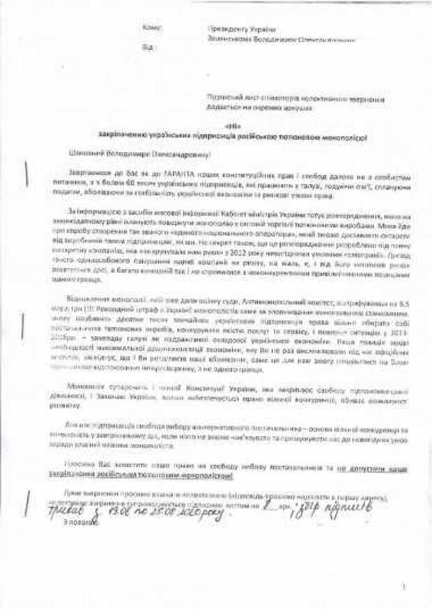 ua. "Это распоряжение разработано под определенную конкретную компанию, которая "выкручивала нам руки" с 2012 года невыгодными условиями "сотрудничества". Опыт такого единоличного господства одной уомпании на рунке, к сожалению, есть, и от его негативов рынок отходит до сих пор, а многие компании так и не справились с конкурентным привилегированными позициями одного игрока", говорится в обращении ФОПов к президенту. ФОПы считают, что возобновление монополии лишит десятки тысяч обычных украинских предпринимателей права свободно выбирать себе поставщика табачных изделий, конкурировать качеством услуг и сервиса, и приведет к упадку табачной отрасли. Авторы обращения верят, что позиция Зеленского относительно максимальной демонополизации экономики, которую он не раз высказывали во время официальных выступлений, показывает, что президент разделяет переживания предпринимателей. Именно поэтому, авторы обращения надеются на принципиальное отстаивание президентом интересов рынка, а не одного игрока. «Монополия противоречит и действующей Конституции Украины, которая закрепляет свободу предпринимательской деятельности, и законам Украины, которыми обеспечивается право свободной конкуренции, убивает возможности развития. Для нас предпринимателей свобода выбора альтернативного поставщика - основа свободной конкуренции и уверенность в завтрашнем дне, когда никто не сможет навязывать и принуждать нас к невыгодным условиям ради собственной наживы монополиста. Просим Вас защитить наше право на свободу выбора поставщиков и не допустить наше «закріпачення» российским табачным монополистом!», - говориться в обращении ФОПов к президенту. В августе 2020 года Минэкономразвития предоставило проект распоряжения Кабинета министров «О реализации пилотного проекта «Национальный оператор на рынке табачных изделий», который был разработан министерством.