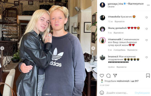 После развода мальчик проживает с матерью, но очень тесно общается со своим отцом, которому удалось сохранить не только бизнес, но и прекрасные отношения с бывшей женой. У себя в Инстаграм Ирина решила трогательно поздравить сына с Днем рождения. Она опубликовала совместный снимок, на котором крепко обнимала мальчика. «13 лет счастья! Люблю очень. Будь счастливым и глубоким», - подписала фото Горовая. В комментариях поклонники присоединились к поздравлениям. «Как на вас похож», «Красавчик», «Приветик имениннику. Такой уже взросленький», «Мои искренние поздравления. С именинником всю Вашу семью. Андрюше супер яркой жизни», - пишут пользователи сети. Напомним, что Ирина Горовая похвасталась отдыхом без детей: "Стоп-кадры счастья". Ранее Politeka писала, что Ирину Горовую засняли в романтической обстановке с молодым красавцем: "Котики". A еще Politeka сообщала, что Горовая встретила День Независимости в компании красивого грузина: "Гений".
