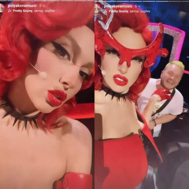 Этот раз не был исключением, на съемке очередного эфира грядущего второго сезона шоу «Маска» Полякова блистала в довольно эксцентричном «кричащем» образе. Черное платье из кожи с красными вставками и на шнуровке по бокам выглядело весьма впечатляюще. А ее необычная маска на голове в сочетании с аксессуарами, вызывающим макияжем с алыми оттенками превратили Полякову в настоящую бунтарку. Звезда поспешила показать свой наряд сразу же перед стартом работы. Возле судейского кресла она покрутилась и всячески демонстрировала, насколько обтягивающий у нее наряд. Также, в самом начале съемок первого же эфира Оля Полякова сразу поделилась с фолловерами фотографиями. Уже сидя за столом, звезда сверкнула необычным образом. Так, в сторис она опубликовала несколько кадров, где показала наряд с весьма нестандартных ракурсов. Ранее сообщалось, в сети раскрыли подробности нового сезона шоу "Маска", украинцы возмущены: "Почему так..." Также, DZIDZIO в броском образе засветил Винника на съемочной площадке "Маски": "Лучшие мужчины государства" Politeka рассказывала, Винник возвращается на ТВ, кем стал повелитель "волчиц": "Жду только ради Олега"