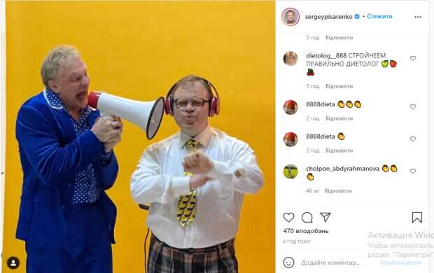 Именно в компании с Никишиным Писаренко и предстал на новых кадрах, сообщает Politeka.net со ссылкой на страницу артиста в Инстагарм. На одном из кадров запечатлено, как Писаренко поднес рупор к уху коллеги, на котором надеты наушники. Похоже, что Никишин танцует, не отвлекаясь ни на что вокруг. «Женя и Сергей вы супер», «Какие вы нарядные!», «И незачем так орать, он и в первый раз тебя хорошо слышал», - комментируют фото пользователи Сети. На другом фото Писаренко и Никишин позируют с шашлыками. «Жрать есть путь и смысл», - прокомментировали снимок в Сети. Отметим, с 2011 года Писаренко и Никишин преимущественно работают в Украине. Писаренко вел программы «Кто против блондинок», «Хочешь, пой», «Парад советов» на «Новом канале». Сергей Писаренко снялся в нескольких картинах — «Туристы», сериалах «Универ», «Счастливы вместе». В 2013 году Сергей Писаренко принял участие в шоу «Танцы со звездами». Напомним, звезда "Дизель шоу" Писаренко вжился в роль алкоголика, удивив внешним видом: "Три дня назад..." Как сообщала Politeka, звезда "Дизель шоу" Писаренко поразил "новой" внешностью после возвращения из России: "Вы даже не представляете..." Также Politeka писала, что звезды "Дизель шоу" Писаренко и Никишин после возвращения из России удивили новыми образами: "Тимон и Пумба"