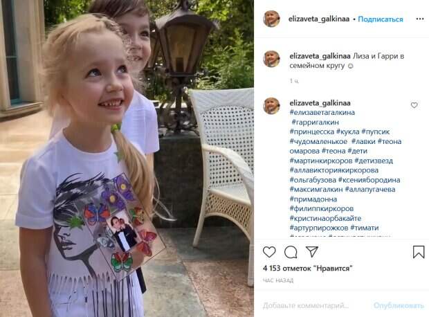 Юные дети Аллы Пугачевой и Максима Галкина показали, как выглядит счастье Фото маленьких Лизы и Гарри Галкина, которые в этом году впервые пошли в школу, а на днях отпраздновали свой седьмой день рождения, появилось на одной из фан-страниц их семьи в Инстаграм. Об этом сообщает Politeka.net. На снимке двойняшки позируют, судя по всему, во дворе их с родителями роскошного дворца.