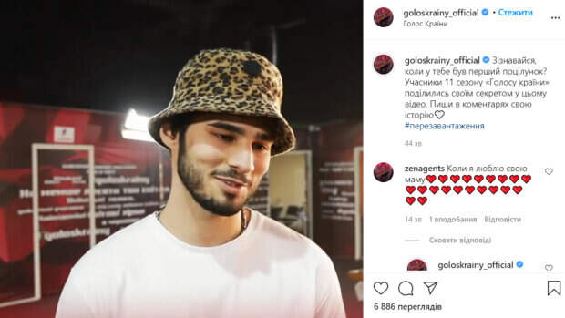 «Признайся, когда у тебя был первый поцелуй? Участники 11 сезона «Голосу країни» поделились своим секретом в этом видео», - подписали видео авторы аккаунта. В опросе участвовало сразу несколько звезд нового сезона шоу. Так, Никита Ломакин, который прославился на «Х-факторе», а также известен романом с Мишель Андраде, признался, что впервые поцеловался в 15 лет. А Галина Куришко, которая попала в команду Олега Винника, заявила, что первый опыт у нее состоялся еще в детском саду. «В садике, в садике. У меня уже там первая любовь была в садике», - рассказала участница. Кроме этого, артистов спросили, как они выражают чувства – словами или действиями. «Сперва словами, а потом действиями», - ответил Ломакин. А вот Анастасия Буханцева, которую с восторгом встретили все тренеры шоу, заявила, что выражает чувства и словами, и действиями. Напомним, что эффектная блондинка взорвала сцену «Голосу країни» вслед за соперницей Монатика: «Весь Х-фактор возвращается…». Ранее Politeka сообщала, что фаворитка "Голосу країни" Мила Нитич порвала с продюсером, все подробности конфликта: «Он меня иногда…». Портал Politeka писал, что фаворитка "Голосу країни" призналась, что у нее было с Монатиком на "Х-Факторе": "Мы с первых дней стали. ..".