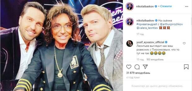 71-летнний российский артист Валерий Леонтьев поразил поклонников внезапно помолодевшим видом Фото артиста засветил на своей странице в социальной сети Инстаграм коллега Леоньева по цеху Николай Басков, передает Politeka.net. «Главный блондин» российской эстрады позирует вместе с легендарным певцом, а третий на снимке – шоумен и певец Александр Ревва, он же Артур Пирожков.