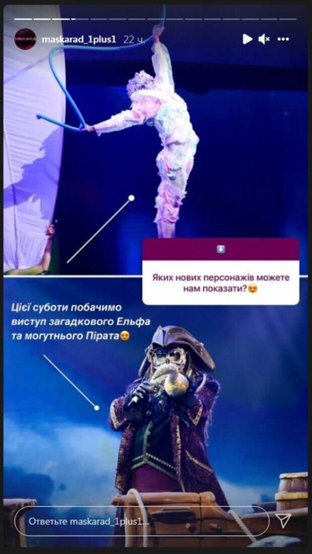 А пока в Сеть до выхода нового выпуска "слили" кадры с новыми интригующими участниками. "В эту субботу увидим выступление загадочного Эльфа и могучего Пирата", - написали авторы поста в официальной группе. Также в стори заявили, что на проект придет известная группа "Go_A". Отметим, ранее пользователей Сети просили угадать, кто же станет новым героем "Маскарада". "Догадайся, кто этот новый фантастический герой, который появится в эфире уже в эту субботу
