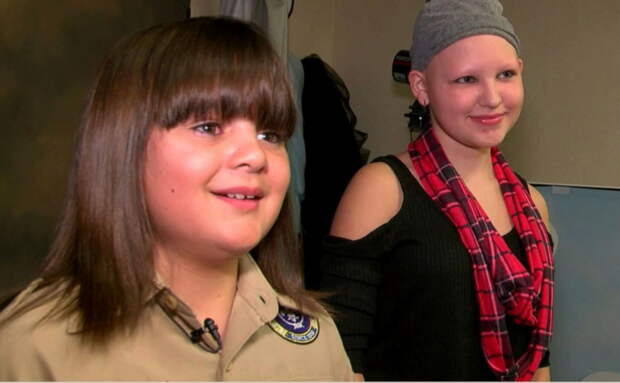 Ребенок закрылся в себе, и стеснялся окружающих.Родители Габби пытались сохранить волосы, но ни одно лечение не дало позитивного результата. Поэтому малышка постоянно носила головные уборы.Тайлер знал, как его лучшая подруга страдает. Из-за этого мальчик поклялся, что подарит ей свои волосы. Он целых два года не посещал парикмахера. Сверстники постоянно над ним смеялись, обзывали девочкой. Но Тайлер не забывал своего обещания, и с гордостью отращивал волосы.Вскоре подарок «был готов». У мальчика был хвостик длиной 30 сантиметров. Вместе с родителями они поехали в гости к семье Руис. Тайлер хотел, чтобы именно Габби отрезала его волосы. Ведь для нее он так долго отращивал шевелюру, и терпел насмешки.Фотографии впечатляют. Посмотрите, сколько в них доброты. Наконец-то девочке сделают парик, и она сможет сама завязывать себе хвостик или заплетать косу.«Увидеть улыбку Габби после того, что она пережила — бесценно. Тайлер такой щедрый и добрый ребенок. Он всегда ставит интересы других людей выше своих», – с гордостью говорят родители мальчика, который отращивал волосы для подруги.[caption id="attachment_48732" align="aligncenter" width="605"]Друзья[/caption]