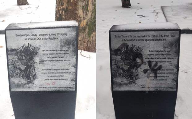 В Сквере пограничников, который находится рядом со старой синагогой Запорожья, неизвестные разрисовали памятные знаки. Об этом сообщает Telegram-канал Объединtнной еврейской общины Украины — крупнейшей всеукраинской еврейской организации. "G2 (жидва) на выход", "C/O2 ✡️" — написано на информационных знаках, описывающих значение рядом установленного памятного знака.