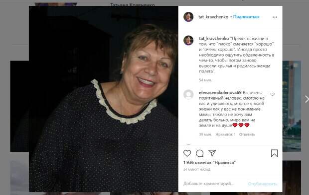 Актриса и звезда сериала "Сваты" Татьяна Кравченко удивила фанатов неожиданным снимком Как передает Politeka.net, фотография появилась в фанатском Instagram-аккаунте, посвященном российской актрисе. "Прелесть жизни в том, что "плохо" сменяется "хорошо" и "очень хорошо". Иногда просто необходимо ощутить обделенность в чем-то, чтобы потом заново выросли крылья и родилась жажда полета", - говорится в подписи к посту.