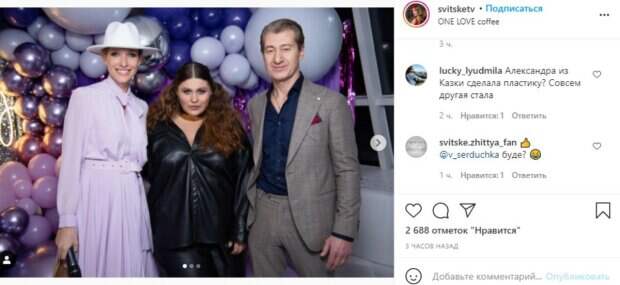 Было классно, весело, празднично и очень цветочно», - рассказала Александра. На странице «Светской жизни» также появились фото из «Kazka Svit Party». «Как музыкальная группа праздновал день рождения и представила собственное мороженое - покажем уже в эту субботу», - сказано на странице. Однако некоторых пользователей удивил вид солистки: «Александра из Сказки сделала пластику? Совсем другая стала». Сообщалось, солистка группы KAZKA Александра Зарицкая заинтриговала поклонников информацией о себе. Так, в этот раз красотка появилась в стильном образе, поднеся камеру поближе. Звезда надела красивый свитер и берет. Завершил образ интересный макияж с длинными стрелками и блестящими акцентами в уголках глаз. "Невероятные фото