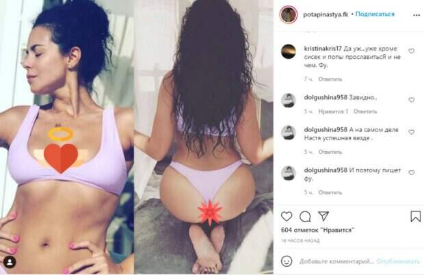 В Инстаграм сама Настя, впрочем, нередко публикует довольно много личных кадров из жизни, а также рассказывая о себе. Порой, излишняя откровенность воспринимается фанатами в штыки, ведь кадры из постели или с самой Настей, позирующей без белья, оценить могут далеко не все пользователи. Сама звезда отмалчивается, почему выставляет все напоказ. Не так давно на одном из фан-аккаунтов звезды также появились снимки из отдыха Каменских. В лавандовом купальнике артистка покрасовалась на пляже и не стала скромничать, выпячивая формы перед камерой. Два фото на коллеже вызвали споры между поклонниками: №Да уж...уже кроме си*ек и *опы прославиться и не чем. Фу; Завидно..; А на самом деле Настя успешная везде; И поэтому пишет фу». Напомним, перед тем, как уехать в Мексику, Настя поставила артиста перед фактом, что улетит в отпуск только с девушками, что возмутило самого Потапа. Тем не менее, любящий супруг сделал Насте сюрприз и через пару недель прилетел к ней, чем покорил сеть. Кадры с личных встреч и даже из спальни озадачили фанатов, ведь на публику такое выставлять не принято. Вот что отвечают фанаты: «Когда у Насти уже будет ребенок сколько же ей ходит в девках....неужели потап не может не продуктивный:'(; Народная мудрость говорит: счастье должно быть тихим. .. не напоказ...; Ну в постели, это вообще уже! Ждём продолжения!; Немного жаль что на показ Вы свои чувства выставляли....; Такая кошка красивая Настя и без детей? уже ведь нужно