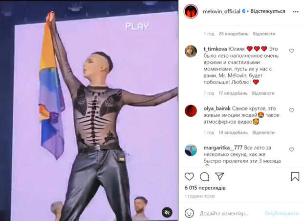 Украинский исполнитель Melovin (Константин Бочаров), который стал новым участником проекта «Танцы со звездами», поделился атмосферным видео, в котором собраны самые яркие летние моменты Как передает Politeka.net, в Инстаграм артист, который был любимчиком Андрея Данилко на Евровидении, опубликовал видео одной из своих поклонниц, которая, судя по ролику, была на всех концертах артиста.