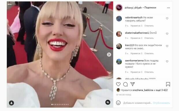 Звезда была в роскошном платье от украинского дизайнера Андре Тана. (Чтобы посмотреть, доскролльте до конца страницы) "Дорогие мои! Я вам стримлю прямо с Одесского кинофестиваля", - поделилась артистка. Также на фестивале засветились журналистка Янина Соколова, певец Иван Дорн, травести-дива Монро, актриса Ольга Сумская с дочкой, прима-балерина Екатерина Кухар и многие другие. Публикация в сети собрала более 3000 лайков и много комментариев. Гости мероприятия вызвали разную реакцию в Сети. "Яночка молодчинка!!!!!