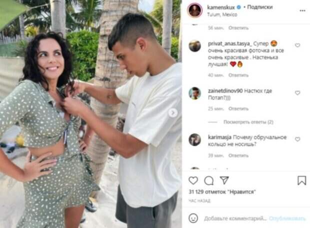 На кадрах, которые представили сами поклонники, можно заметить, как артистка хорошо проводит время на яхте. Весело задрав руку вверх и выставив одну ногу вперед, звезда позировала в коротеньком простом платье, подчеркивающем ее фигуру. Не так давно в сети в очередной раз появились слухи, о беременности Насти, которую она так тщательно скрывает. Тем не менее, певица такие сплетни никак не комментирует и продолжает показывать фигуру. Причем делает это артистка с осторожностью, чтобы даже не показалось, будто она поправилась. До этого Настя решила показать закулисье съемочного процесса. Впрочем, поведение юного мексиканца, засветившегося с ней на кадрах, заинтересовало фанатов больше всего. Молодой человек что-то увлеченно цеплял Насте на воротник, положив руки практически ей на бюст. "Где кольцо?