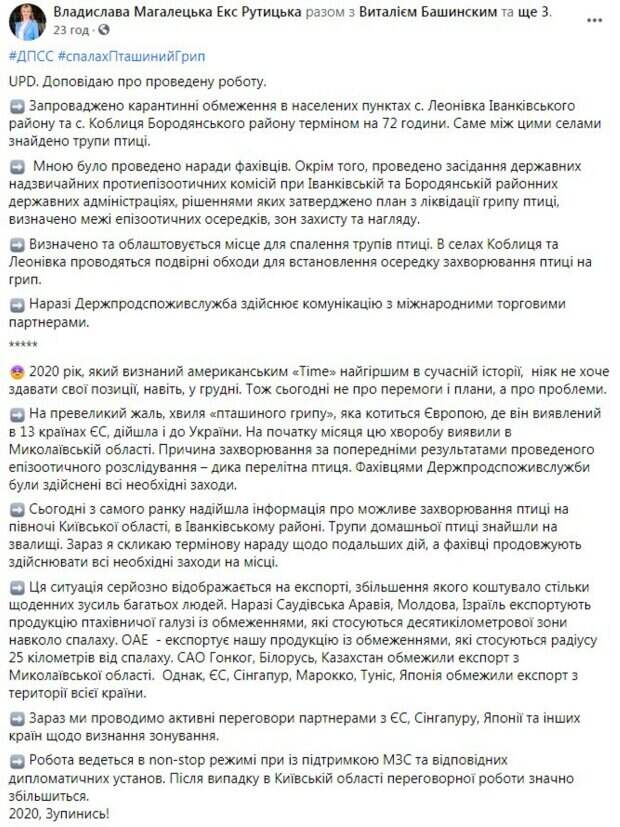 Первые случаи птичьего гриппа обнаружили в Украине Вирус, который прокатился волной уже по 13 странам Европы, добрался и к нам. Об этом на своей странице в Facebook заявила глава Государственной службы Украины по вопросам безопасности пищевых продуктов и защиты потребителей Владислава Магалецкая. "К большому сожалению, волна "птичьего гриппа", которая катится по Европе, где он обнаружен в 13 странах ЕС, дошла и до Украины.