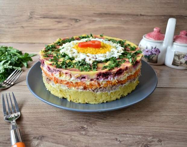 Тунец под шубой — новый взгляд на классический салат. Чтобы салат получился ещё вкусней, готовьте его с домашним майонезом. Рецепт майонеза также описан. Если вы любите тунец, обязательно приготовьте этот салат, вам точно понравится! Ингредиенты Для салата Картошка 5 шт. Морковь 4 шт. Свекла 3 шт. Тунец в собственном соку 250 гр Яйца 5 шт.