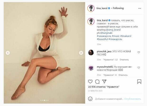 Звезда питается по рекомендациям диетолога, который составил ей подходящий рацион. В частности, звезда отдает предпочтение салатам, кашам, овощам, фруктам. Также звезда ест постное мясо или рыбу. А сладкое, мучное, копчености, жареное - Тина почти полностью исключила из рациона. Также звезда занимается спортом. Результаты такой работы над собой видны в новой фотосессии. Певица позировала в полупрозрачном боди, выставив напоказ черное белье. "Плевать, что унесло, главное - в унисон. прижимай меня еще сильнее к себе ", - заинтриговала чувственным посланием певица. За полчаса публикация собрала более 16 тысяч лайков. "Нас ждет новая песня?