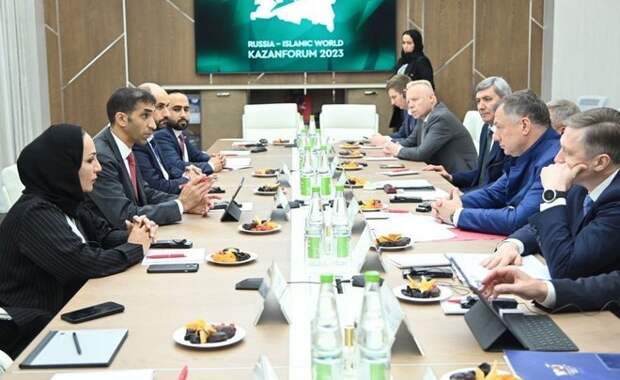 В рамках Международного экономического форума «Россия — Исламский мир: KazanForum» раис Татарстана Рустам Минниханов принял участие во встрече заместителя председателя правительства России Марата Хуснуллина с государственным министром внешней торговли ОАЭ Тани Ахмедом Аль Зейуди. — Татарстан активно способствует укреплению российско-эмиратских отношений.