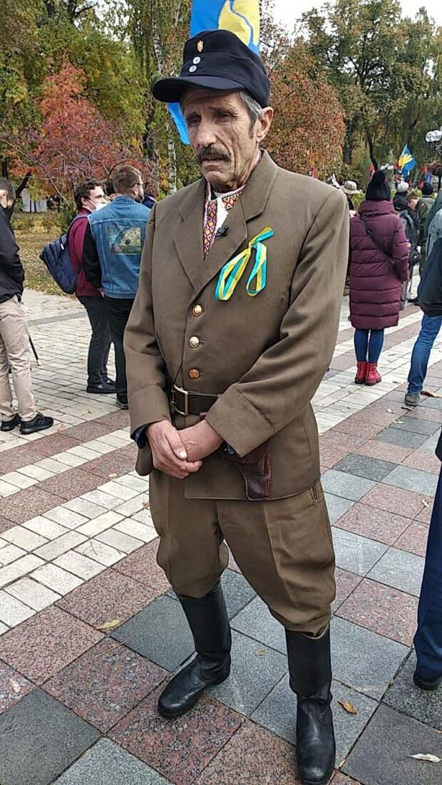 В центре Киева националист-пенсионер в бандеровской шапке прилюдно читал «стих», в котором призывал «стрелять московских собак». Перфоманс состоялся в ходе празднования в честь «дня защитника и защитниц» Украины и марша «УПА», передаёт корреспондент «ПолитНавигатора».