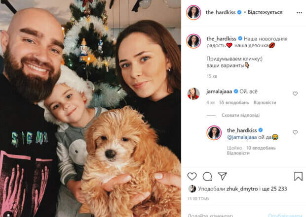 В руках Юлия держала маленькую собачку. Судя по всему, собака стала новогодним подарком для ее сына. Стоит отметить, что все выглядели очень счастливыми на фото. Всегда серьезный Вал улыбался, а Санина едва сдерживала эмоции. «Наша новогодняя радость, наша девочка. Придумываем кличку:) ваши варианты», - подписала фото звезда. В комментариях стали делиться своими предложениями с именами, а также поздравлять семью Юлии с пополнением. «Боже какая красивая, поздравляю», «Судя по глазам, больше всего собаку хотела мама», «Счастливого нового года, The Hardkiss!», «Какой хороший», «Какие сладкие», «Ой, класс! Персик», «Красивая девочка заслуживает красивое имя», - пишут пользователи сети. Ранее мы писали, что Юлия Санина перед Новым годом посетила танцевальный зал, чтобы потренироваться со звездой «Танців з зірками» Аленой Шоптенко. Красотка заявила, что накануне праздника нужно заниматься тем, что вдохновляет. Санину, на данный момент, вдохновляют танцы. Напомним, что Санина показала, какой была в начале карьеры, звезду не узнать: «Исторический момент». Как сообщала Politeka, Санина подвела итоги 2020 года и заговорила о громком "расставании": "Я буду благодарна тебе...". Также Politeka писала, что Санина покорила невероятной внешностью крупным планом: "Потрясающая".