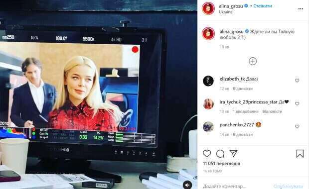 Популярная украинская певица Алина Гросу анонсировала выход второго сезона сериала "Тайная любовь" Об этом сообщает Politeka со ссылкой на аккаунт Гросу в соцсети. Так, певица запостила на своей странице кадр со съемок сериала и поинтересовалась у поклонников, ждут ли они продолжения. "Ждете ли вы "Тайную любовь-2"?