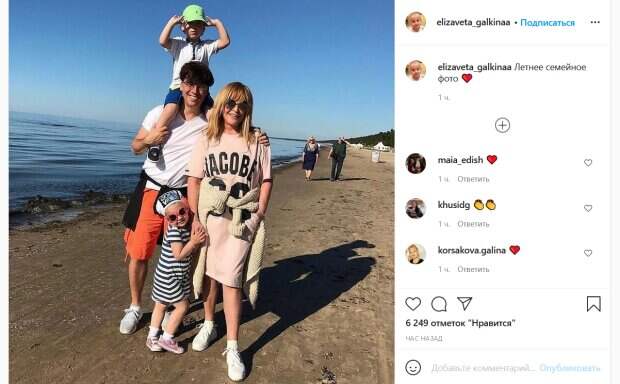 Для прогулки на пляже Алла Борисовна выбрала довольно смелый для своего возраста наряд. Так, певица щеголяла в молодежном платье-футболке, едва прикрывающем колени. На пояс она повязала теплую кофту. Завершили образ Примадонны белые кроссовки и крупные очки. К певице трогательно прижалась ее дочь Лиза, а маленького Гарри Галкин усадил к себе на плечи. «Летнее семейное фото», - говорится в подписи к снимку. Поклонники звездной семьи бурно обсуждают снимок в комментариях. «Мои Любимки», «Дружная семейка! Вы такие замечательные, счастливые, красивые!», «Очень хорошее фото», «Вы прелесть», «Лучшая пара», «Ну вот же, прекрасная семья!», «Лето ах лето, когда же следующее лето», «Семейная идиллия», «Чудесная, милая семейка!! Благополучия на долгие годы», «Аллочка Борисовна, ну просто прелесть, моложе молодых! Здоровья вам и счастья на долгие годы! Злопыхатели пусть отдыхают», «Алла вы здесь выглядите на 35 не больше,, счастливая семья», - пишут люди. Напомним, стареющая Пугачева поразила восковым лицом и странной позой: "Уже ложишься и думаешь...". Как сообщала Politeka, сбежавший от Пугачевой и детей Галкин без штанов похвастался новой жизнью. Также Politeka писала, что Галкин ошарашил известием, что уезжает от Пугачевой и детей, что произошло: "В таком виде? ".