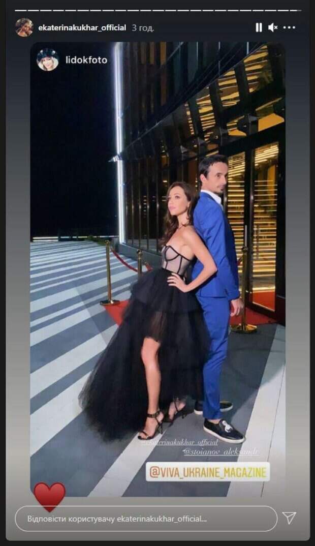 Как можно понять, в этот раз Кухар и Стоянов стали победителями премии Viva! Awards 2021 в категории "Благотворительность".  На фото Кухар позировала в шикарном полупрозрачном платье с большим декольте и в босоножках. Рядом стоял Александр Стоянов в синих штанах и пиджаке, а также белой рубашке. Пара прижалась друг к другу спинами, восхищая роскошным видом среди ночных огней.  Фанаты не смогли поставить лайки или написать комментарии под публикацией, ведь кадр оказался в сторис Инстаграм, но так и хочется добавить: "Вот это да". Сообщалось, что известная украинская балерина Екатерина Кухар впечатлила новым вечерним нарядом. «Привет, мои хорошие. Сегодня замечательный день. Город наконец-то оживает, светские мероприятия возобновляются», - обратилась Кухар к поклонникам из своего автомобиля. Напомним, Кухар из «Танців з зірками» показала дочь, которая пошла по ее стопам А еще Politeka сообщала, что Кухар из "Танців з зірками" в "прозрачном" наряде взбудоражила видом на сцене Также Politeka писала, что Кухар из «Танців з зірками» с мужем, умостившись прямо на полу, сообщили украинцам хорошую новость