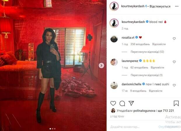 Известная американская модель Кортни Кардашьян похвасталась безупречной фигурой, примеряв смелое мини Как рассказывает Politeka, соответствующие кадры знаменитость выбросила у себя на странице в Instagram. «Кроваво-красный», - коротко говорится в подписи. Уточним, что на опубликованных кадрах Кортни позирует в мини-платье с поясом посреди красной комнаты, фотографируя себя в зеркало.