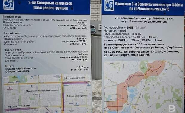 В 2022 году казанский МУП «Водоканал» собирается завершить реконструкцию аварийного участка третьего северного коллектора. К ней приступили зимой этого года. Кроме этого, идет реконструкция очистных сооружений города на 6 млрд рублей из федерального и республиканского бюджетов. Работы начаты еще в 2021 году, завершатся в 2024-м.