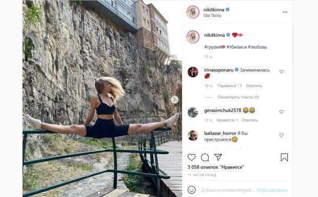 Звезда студии «Квартал 95» Екатерина Никитина продемонстрировала впечатляющую растяжку во время путешествия Как пишет Politeka.net, популярная артистка из «Женского Квартала» показала впечатляющие фото в новом посте на своей странице в Инстаграм. Так, Никитина решила оригинально развлечься во время поездки в Грузию.