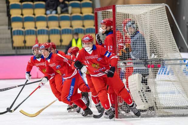 На 16-й минуте ему ответил иркутянин Максим Семенов с углового, а на 20-й минуте Александр Антипов вывел «Байкал-Энергию» вперед, тоже с корнера — 2:1. На 37-й минуте сборник Янис Бефус сравнял с выхода один на один, а затем Владимир Каланчин на 41-й минуте попытался уйти в отрыв прямым ударом с входа в штрафную, если бы гол Антипова на 45-й минуте не нивелировал успехи сборной с пенальти — 3:3. На 53-й минуте Бефус получил мяч поравнявшись с вратарской площадной иркутян и по-теннисному пробил в свободное пространство ворот четвертый мяч — 3:4. Но и здесь у «Байкала» быстро нашелся голевой ответ — на 62-й минуте Павел Анисимов точно пробил с острого угла. В оставшиеся полчаса дважды отличилась российская сборная и столько же раз, игроки сборной не реализовали свои моменты с выхода один на один. «Байкал-Энергия» (Иркутск) — Сборная России 4:6 (3:3) Голы забивали (минуты): Максим Семенов (16), Александр Антипов (20, 45), Павел Анисимов (62) — Алмаз Миргазов (3), Янис Бефус (37, 53), Владимир Каланчин (41, 90), Юрий Шардаков (62). Накануне стало известно, что Международная федерация бенди (FIB) планирует провести чемпионат мира в Швеции, но сборные России и Белоруссии на него не пригласят, как выразились в федерации, «из-за текущей ситуации». Читайте также: Международная федерация отстранила сборную России от ЧМ по хоккею с мячом