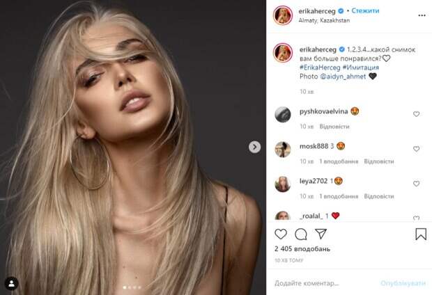 На одном из кадров девушка опасно наклонилась, рискуя засветить лишнее. Эрика пощекотала нервы публике, заставив внимательно присмотреться к фото, чтобы выбрать лучшее. "1,2,3,4...какой снимок вам больше понравился?