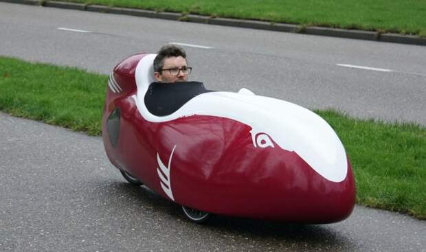 Веломобиль – это трехколесный велосипед с аэродинамическим корпусом, которым пилот управляет, находясь в лежачем положении. Он не отличается особой проходимостью, особенно при езде в гору, зато благодаря обтекаемости на хорошей дороге на нем можно развивать достаточно высокую скорость, затрачивая меньше усилий.