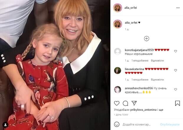 Надо сказать, что этот снимок вызвал бурю эмоций у поклонников звезды. На фотографии Алла Борисовна позирует сидя на стульчике и держа на руках маленькую Лизу. Перед камерой артистка появилась в простом черном платье с белоснежным воротником. Ее волосы небрежно уложены, а на лице легкий макияж и милая улыбка. Маленькая Лиза умостилась в объятия звездной мамы, на ней яркое красное платьице с интересным узором, а волосы заплетены в милые косички. Пользователи тут же принялись активно обсуждать новую фотографию Пугачевой: "Счастливая мама! Прелестное дитя", "Лица отфотошопили до неузнаваемости", "Сколько красоты и счастья в этом кадре!", "А вы, завистники, заткнитесь", "А руки Бабуси забыли отфотошопить", "Ну очень красивые", "Прекрасно", "Такие милые", "Лиза прелесть, а бабушка на мужчину больше похожа", "Что за фотошоп? Это лицо не Аллы. Графика", "Красивая дочка", "Потрясающее фото". Напомним, 72-летняя Пугачева показала себя в платье-мини и пожалела: "Что у старушки с ногами?". Как сообщала Politeka, Орбакайте озадачила сеть, примеряв одежду не по сезону: "Вроде лето, не жарко?". Также Politeka писала, 72-летняя Пугачева с обнаженными плечами напугала своим видом: "Ходячая пластическая хирургия".