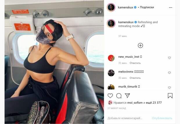 Также длина топа позволила взглянуть на идеальный пресс и тонкую талию соблазнительницы. Красотка слегка выгнулась, сверкнув ребрами, а также бедрами, которые обтянули лосины. Звезда завершила образ бейсболкой, а лицо прикрыла маска. Видно, что Настя была без макияжа и хвасталась натуральной красотой. "Режим обновления и возврата ✔️
